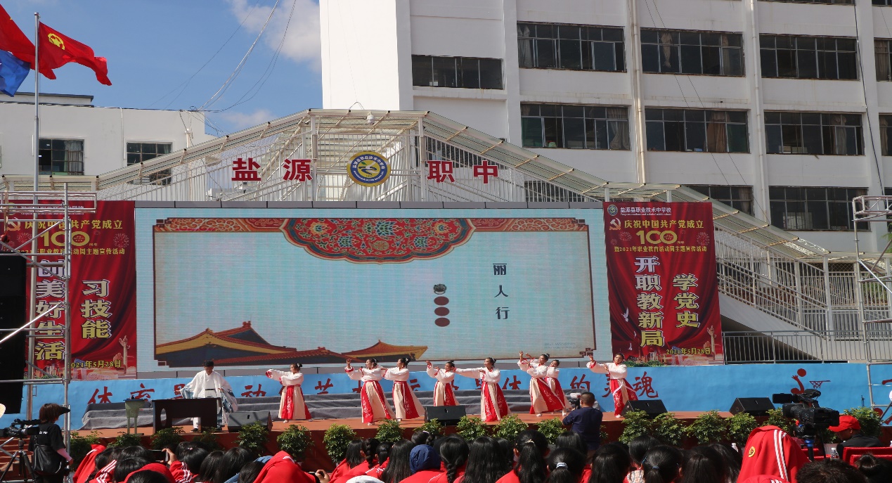 他希望盐源职中人全面贯彻《国家职业教育改革实施方案》和国家职业教育大会精神,以党史学习主题活动为契机,继续保持发扬光荣传统,与时俱进,厚积薄发,不断加强教师队伍建设,不断提高办学水平,积极开展教育科学研究,深化教育改革,增强学生的创新精神和实践能力,把学校建设成为职业教育的示范基地、人才辈出的摇篮、崇尚创新的典范。他希望盐源职中的同学们,珍惜年华,志存高远,胸襟远大,“博学而笃意,切问而近思”,在求索中加强修养,锻炼品格,提高能力,实现服务祖国、回报社会的理想。希望全社会进一步重视职业教育、关心职业教育、支持职业教育,为盐源职业教育事业创造更好的发展环境。随后黄局长宣布盐源县职业技术中学校庆祝中国共产党成立100周年暨2021年职业教育活动周专题宣传活动开幕。
