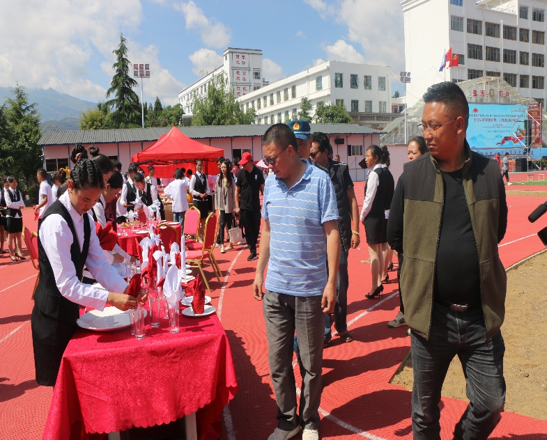 文艺演出结束后,与会嘉宾还专门参观了我校烹饪、旅游、老年护理、农学、机械、汽修、服装等专业学生技能比赛展示。各专业学生都以娴熟专业技能为大众展示了职业教育你的成绩。烹饪专业以巧妙的精雕技艺用食材雕刻出了一件件精美的艺术用品;服装专业学生作图取材、穿针搭线、技能熟练、缝制一套套漂亮的民族服饰;汽修专业学生以娴熟的技能展示汽车维护与保养的水平,获得了在场观众的高度评价。随后在场人员还参观了学校文化建设,听取了学校专业建设的相关规划介绍。