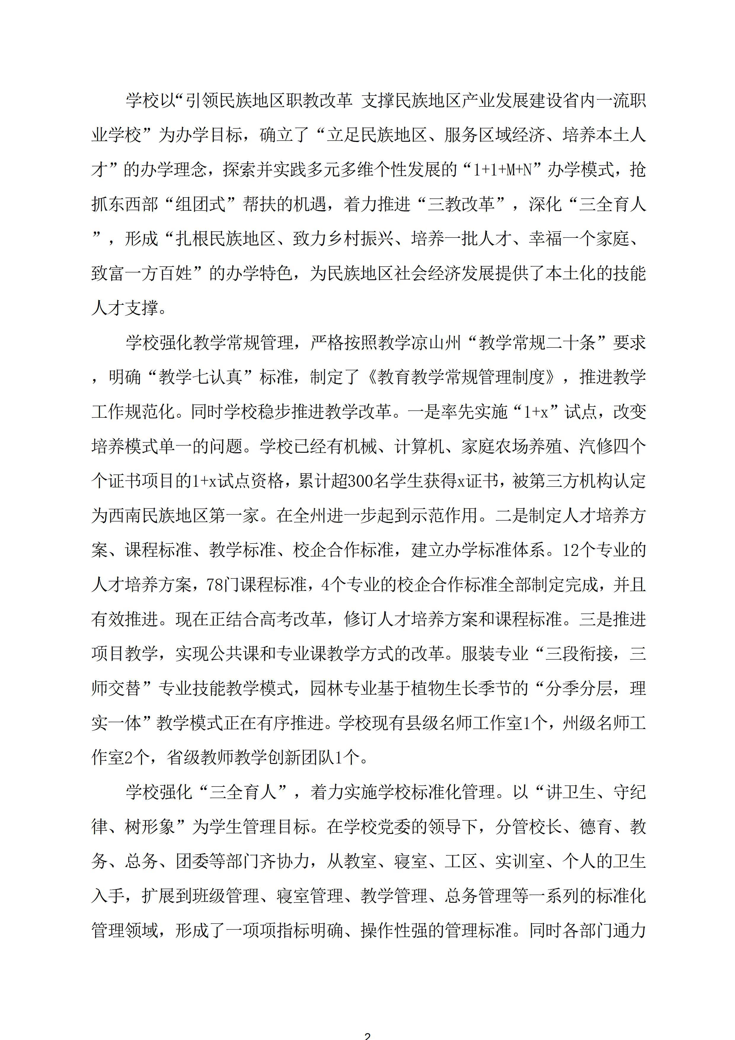 本年度,学校持续深化“三教改革”与“三全育人”,以省级示范专业为引领,推进“1+1+M+N”办学模式创新;紧抓东西部“组团式”帮扶机遇,升级“蓝鹰工程”等校企合作项目。同时,聚焦乡村振兴开展多元帮扶,强化“双师型”教师队伍建设,以升学就业双轨发展为抓手,助力民族地区人才振兴与产业升级。