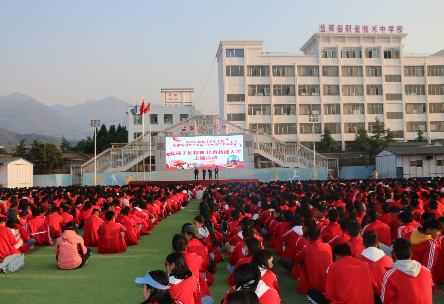 在热烈庆祝中国共产党成立100周年之际,为深入学习贯彻落实习近平新时代中国特色社会主义思想,弘扬劳模精神和工匠精神,激励广大师生走技能成才、技能报国之路,4月26日,我校在运动场开展以“弘扬工匠精神 培育技能人才”为主题的庆祝中国共产党成立100周年系列活动。活动由学校党委委员、副校长邓忠保主持,学校党委班子成员及全校师生共3000余人参加活动。