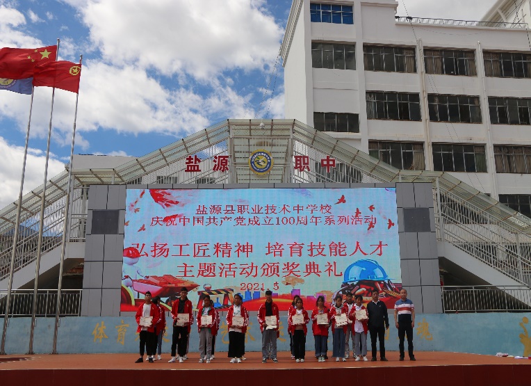 活动首先为在观看央视《大国工匠》节目中弘扬工匠精神观后感写作优秀的同学和教师颁发了荣誉证书。随后为在2021年凉山州教师教学能力大赛暨班主任能力大赛中获奖的教师和班主任,以及在我校教师技能大比武中取得优异成绩的教师进行颁奖。